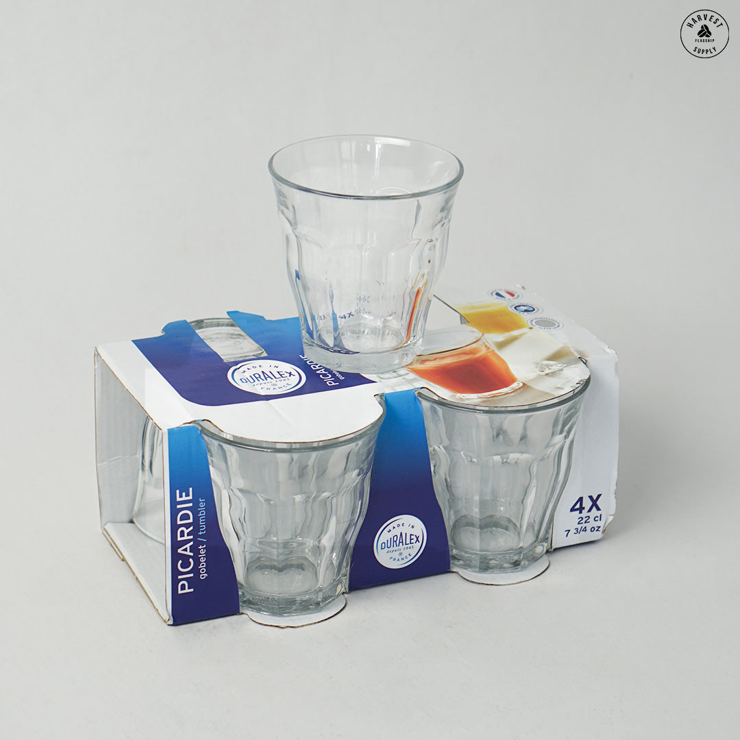 Set of six glasses known as the "original French tumblers", the tempered Picardie glasses are functional and stylish - they feel extremely comfortable in your hand. Named after the Picardie province in northern France, this region is the heartland of French gothic cathedrals. The Picardie tempered glasses are suitable for hot or cold drinks and conveniently stackable. Microwave and dishwasher safe, impact and chip resistant, extremely durable and the perfect weight. Made in France.
