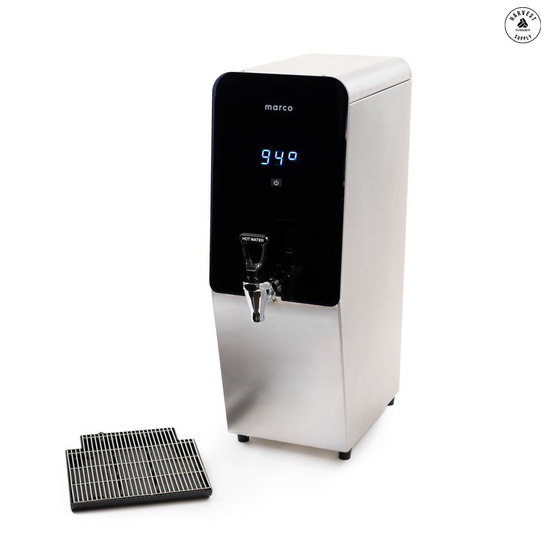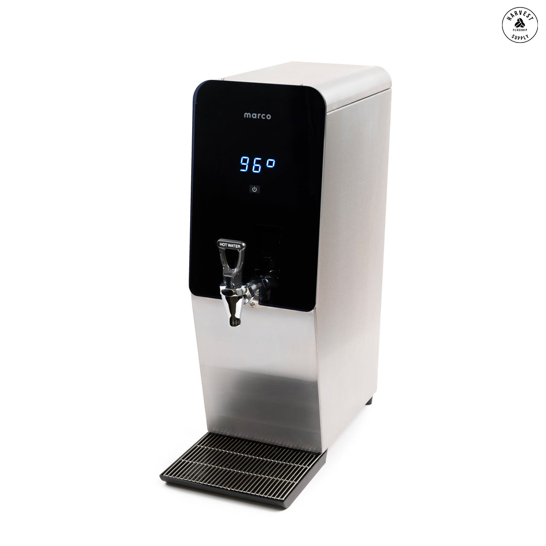 New from Marco. MT8 Commercial water boiler with tap. Stainless-steel casing with minimal countertop footprint. Insulated tank for energy-efficiency. Compatible with hands-free tap adapter.