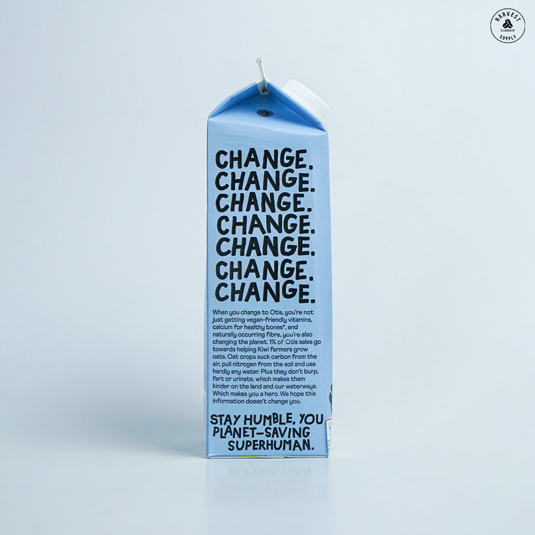 I'm Otis Oat M!lk, the Everyday one. Made using 100% Kiwi oats, I’m perfect for muesli, by myself, or with a cup of filter coffee. High in calcium and fortified with vitamins D2, B2 and B12, I’m also a yummy source of dietary fibre.
